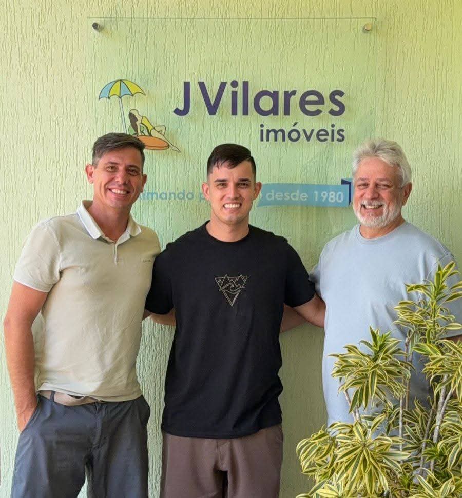 Na imagem, os sócios Carlos Guimarães, Rodrigo Vilares e Júlio Cesar Gomide dos Reis representam mais do que a direção da J Vilares Imóveis: simbolizam a continuidade de um legado iniciado em 1980 por Manuel Vilares (in memoriam), pioneiro do mercado imobiliário em Bertioga.